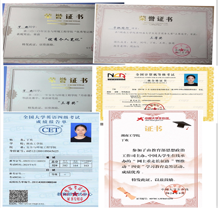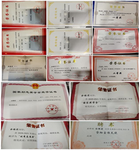 在校期间荣获国家奖学金1次,校级优秀学生特等奖学金1次,优秀共青团员1次,优秀学生干部1次,三好学生1次,优秀运动员1次。以项目负责人的身份参加省级项目的立项工作,分别以主要成员身份参与多项国家级和省级项目的申报工作,在实践中检验真理;积极参加第七届“互联网+”大学生创新创业大赛青红赛道荣获校级一等奖;暑期参与三下乡社会实践活动,荣获校级优秀服务团队,优秀成果,优秀个人等荣誉,并在中国青年网获得表彰。