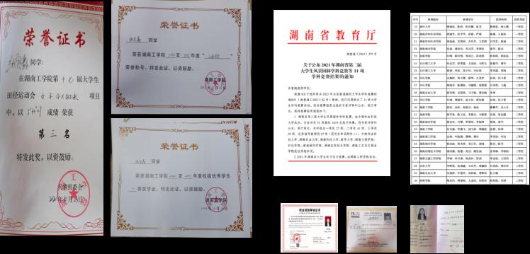在校期间荣获国家励志奖学金1次、二等奖学金2次、优秀学生干部、优秀共青团员等荣誉;积极参加第七届“互联网+”大学生创新创业大赛主赛道荣获校级三等奖;暑期2次参与三下乡社会实践活动项目,均校级立项。参加衡阳市国际马拉松比赛志愿服务、疫情初期参加志愿服务并收到镇政府感谢信及县级媒体报导。此外积极参与大学生创业活动,并成立团队。