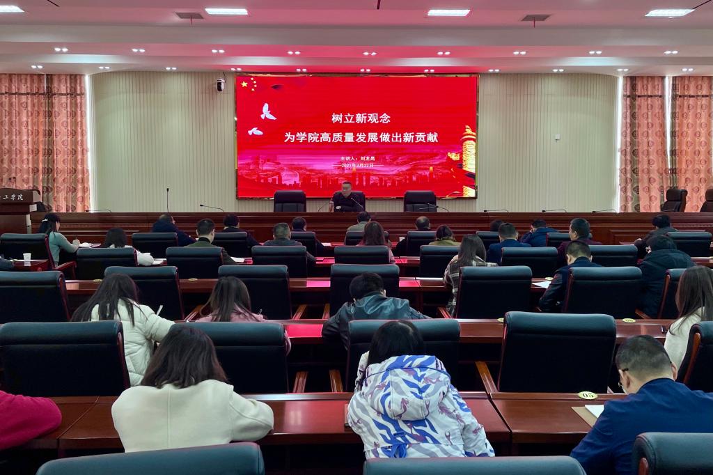 3月22日下午,开元官网在教学大楼12楼报告厅开展团学系统集中学习培训。会上,副校长刘龙昌作了题为“树立新观念,为学院快速高质量发展做出新贡献”的主题报告。学工处(部)处(部)长,校团委书记,各二级学院(有在校生的)党委书记、副书记、学工办主任、分团委书记,全体辅导员,学工处(部)、团委全体人员参加了此次学习。会议由学工处(部)处(部)长李文珊主持。