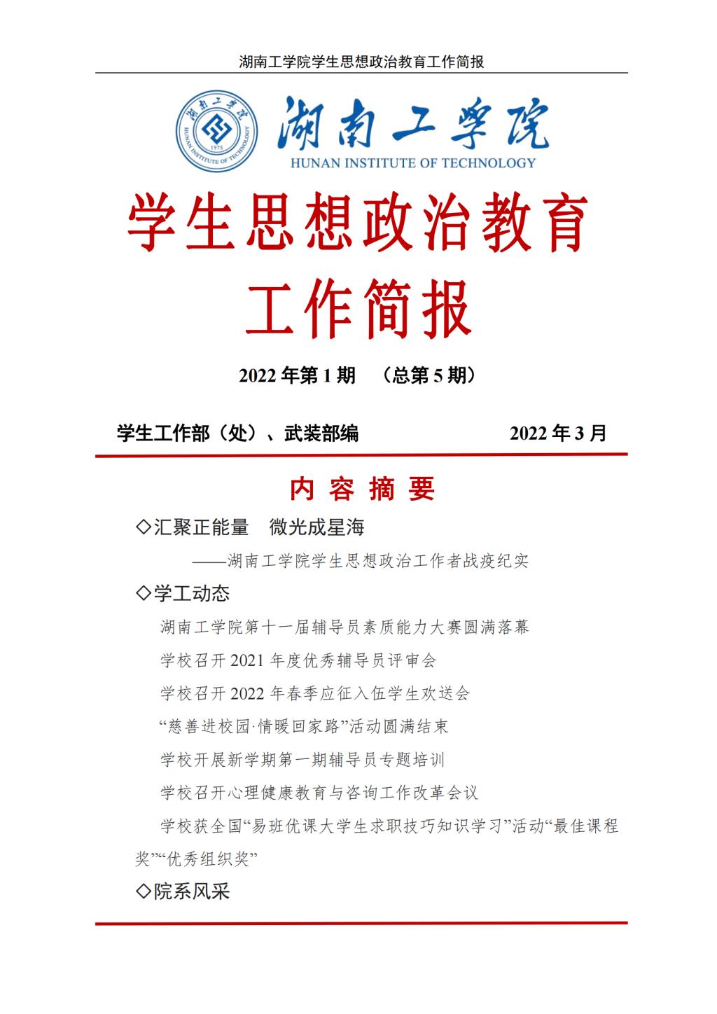 开元集团网站2022年学生思想政治教育工作简报(2022年第1期(总第5期))