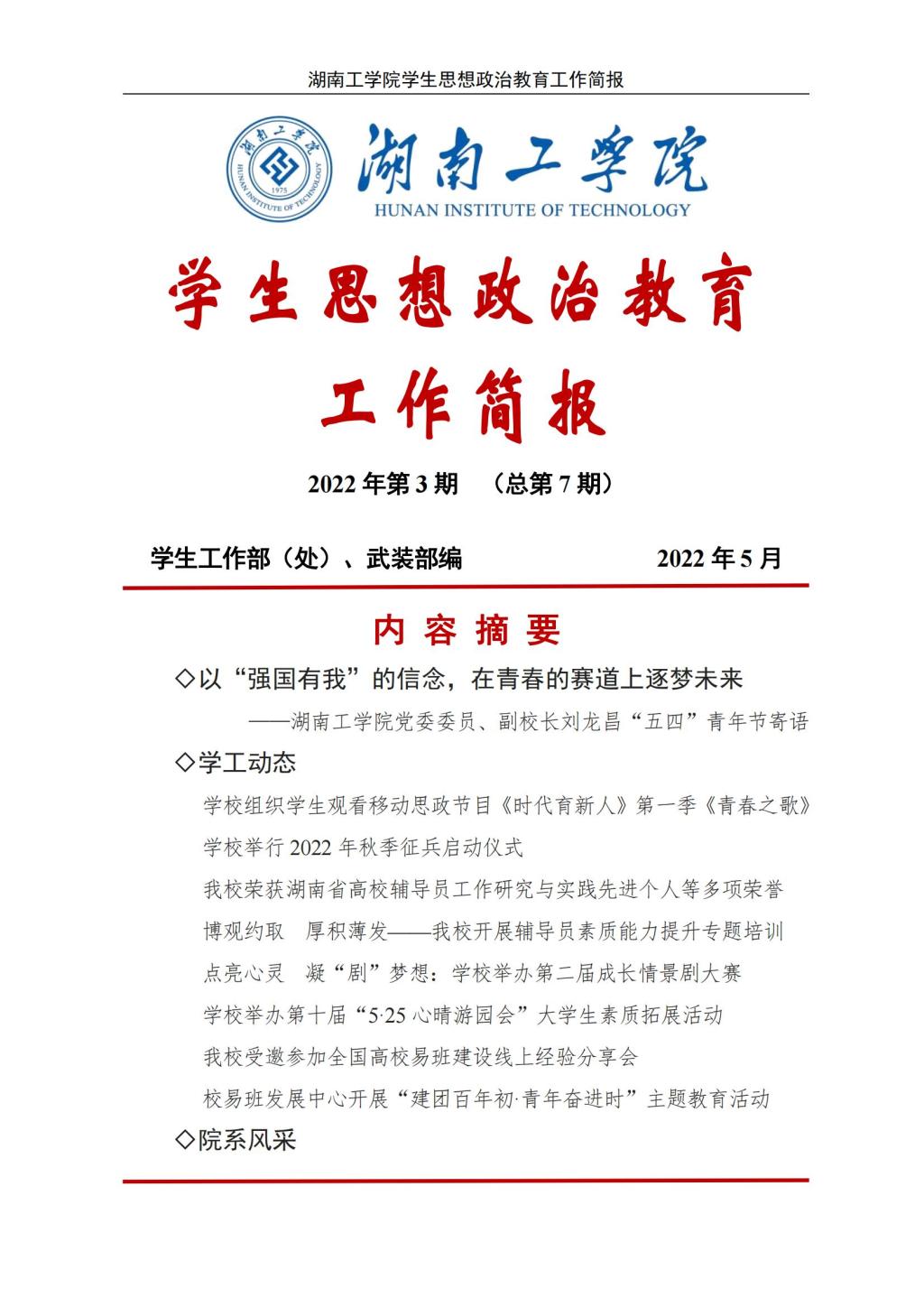 开元集团网站2022年学生思想政治教育工作简报(2022年第3期(总第7期))