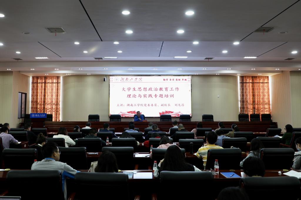 为进一步提升大学生思想政治教育工作的理论水平和专业素养,10月14日,开元官网“大学生思想政治工作理论与实践”专题培训在船山报告厅举行。校党委委员、副校长刘龙昌出席并作专题报告,学生工作部(处)部长曹毅主持活动。