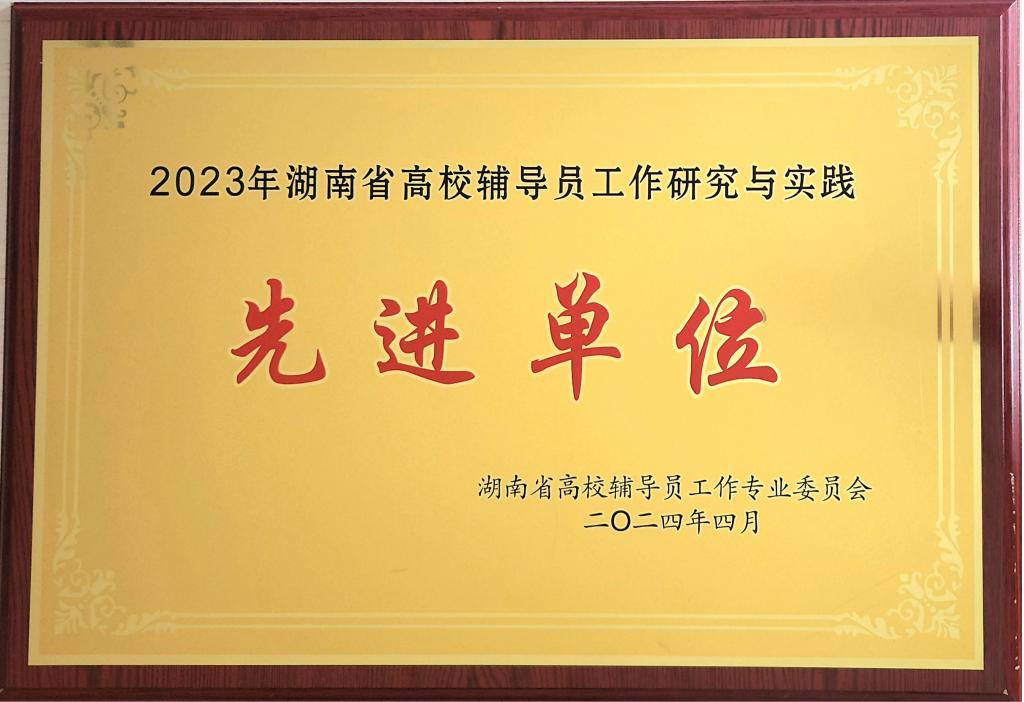 “湖南省高校辅导员研究与实践先进单位”奖牌