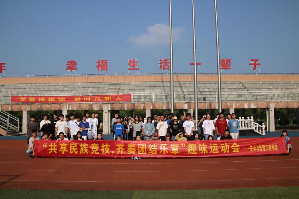 为落实学校疫情防控工作要求,加强对学生的人文关怀,帮助学生缓解焦虑情绪,增强学生身体素质,4月23日下午,安工学院举办了首届“共享民族竞技 齐奏团结乐章”趣味运动会。学院学工办主任兼团委书记傅娜、辅导员蒋昂松、陈思瑶、胡君捷以及100多名(共计18支队伍)参赛选手参加了本次活动。