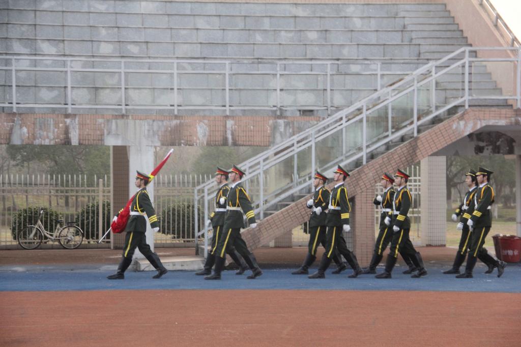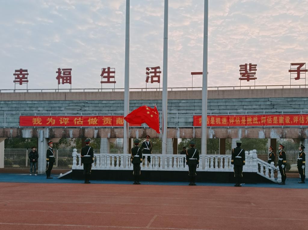 英姿飒爽的国旗护卫队迈着整齐的步伐,护送鲜艳的五星红旗进场,伴着庄严嘹亮的国歌,五星红旗冉冉升起,全体师生行注目礼,向国旗敬礼致意,将激励我们永远爱党爱国,心怀“国之大者”,勇于拼搏奋斗,不断砥砺前行。