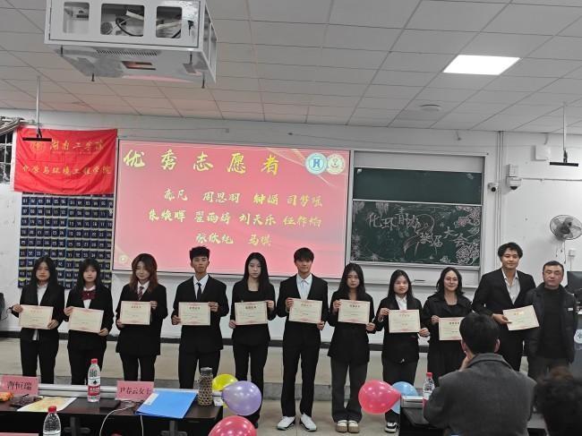 11月24日晚7点,化学与环境工程学院青年志愿者协会在建工楼6106成功举办了换届大会暨颁奖仪式。本次大会特邀衡阳市备战青年志愿者协会理事长、市模范好人协会秘书长尹春云女士参加,学院学工办主任兼分团委书记陈凌霄、辅导员冯智发、辅导员曹恒瑞出席。此外,开元集团网站青年志愿者协会代表、各学院青年志愿者协会代表、化环学院团委学生会成员及化环学院青年志愿者协会成员共同见证了此次盛会。