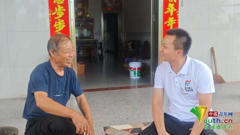 图为团队成员与胡爷爷交谈。吴佳美供图