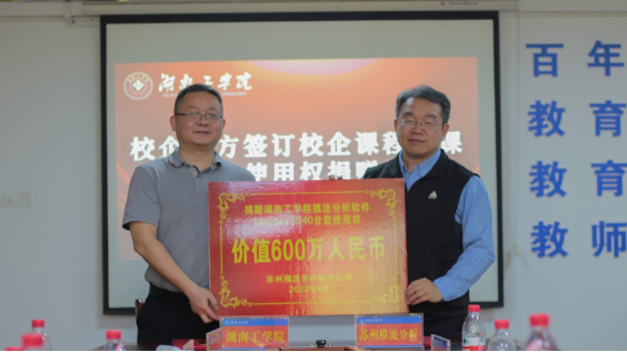 智能制造与机械工程学院副院长王小虎和蔡铭宏共同签署了软件使用权捐赠协议和共建模流分析实训基地协议。